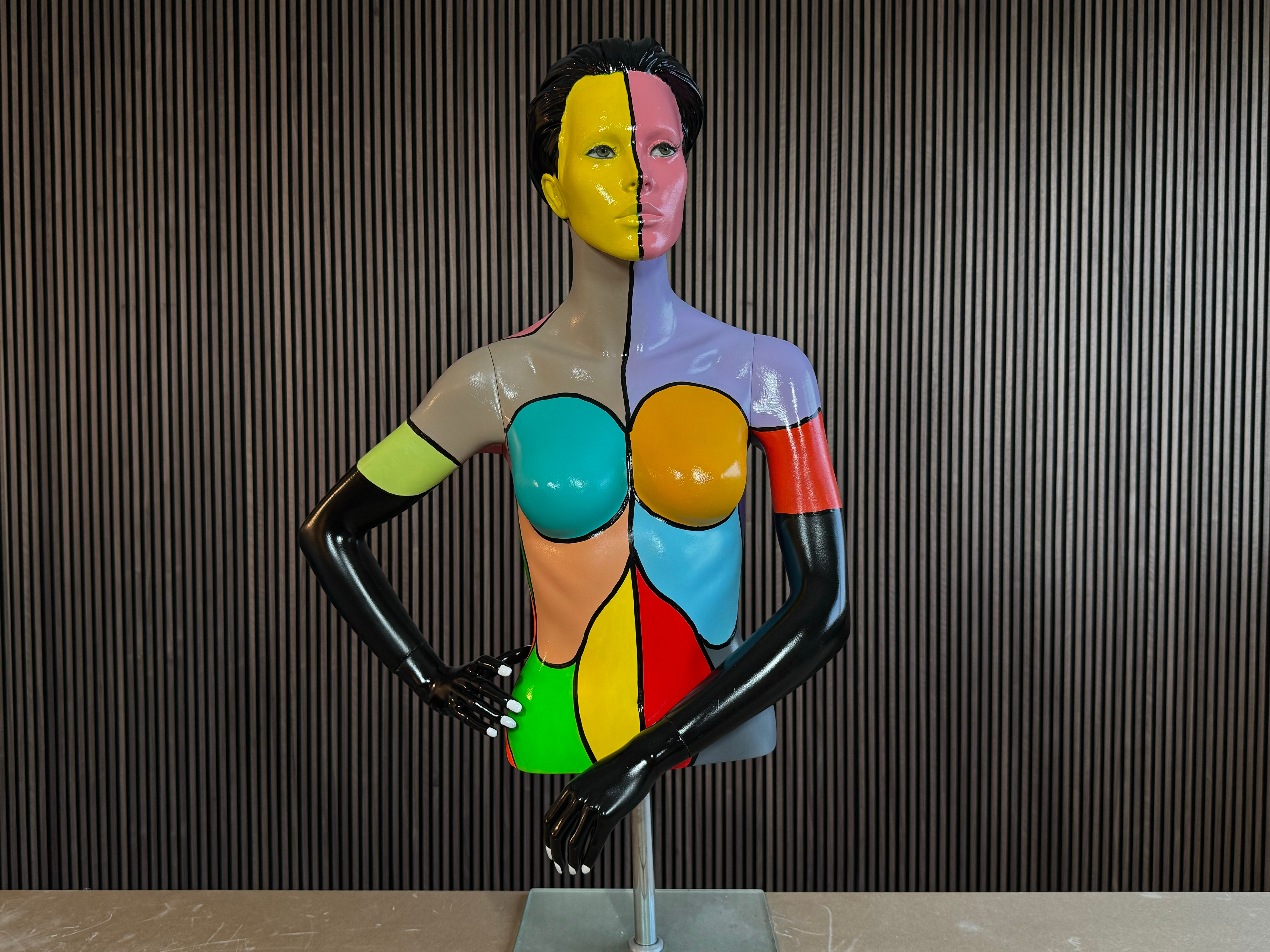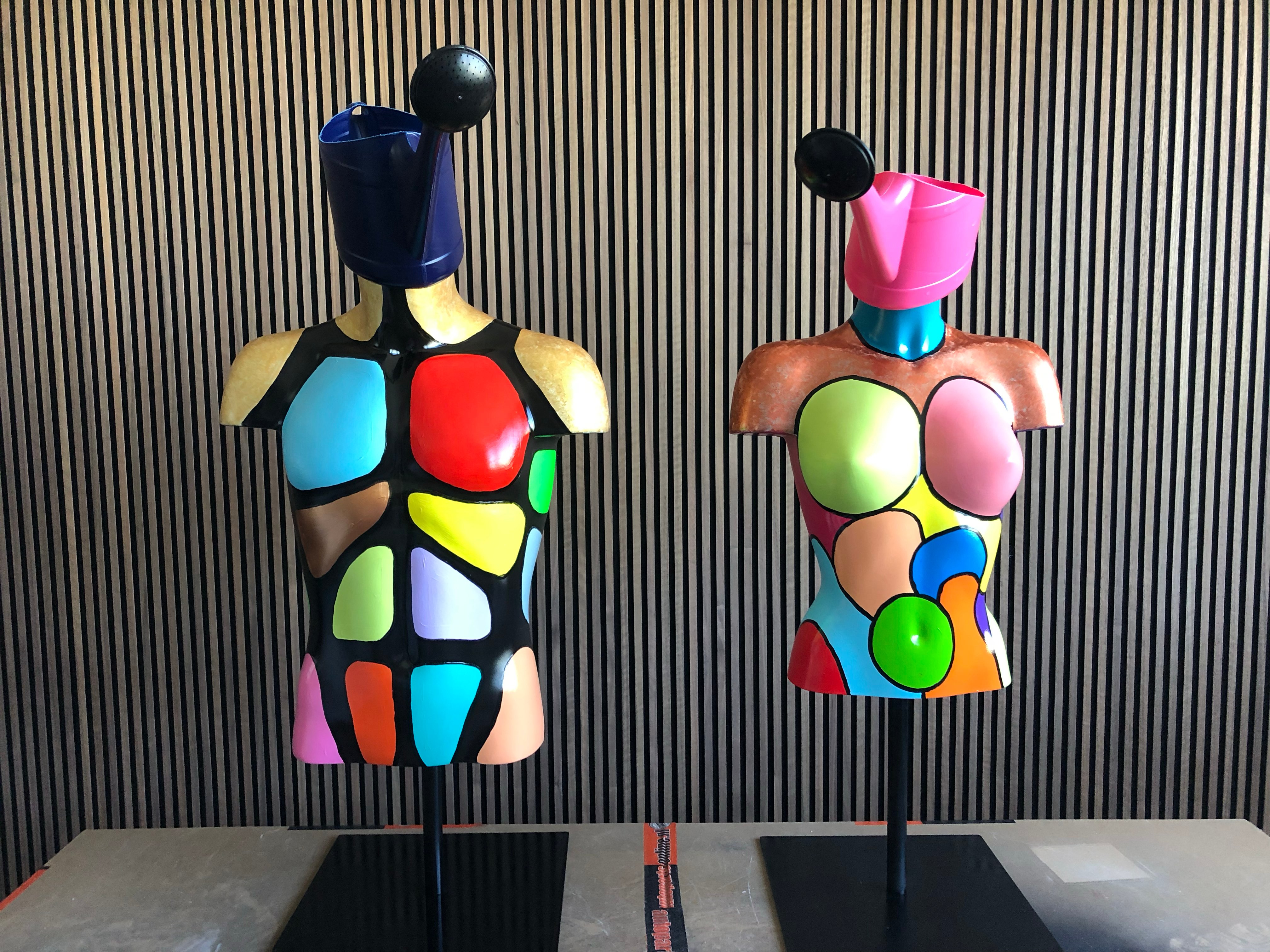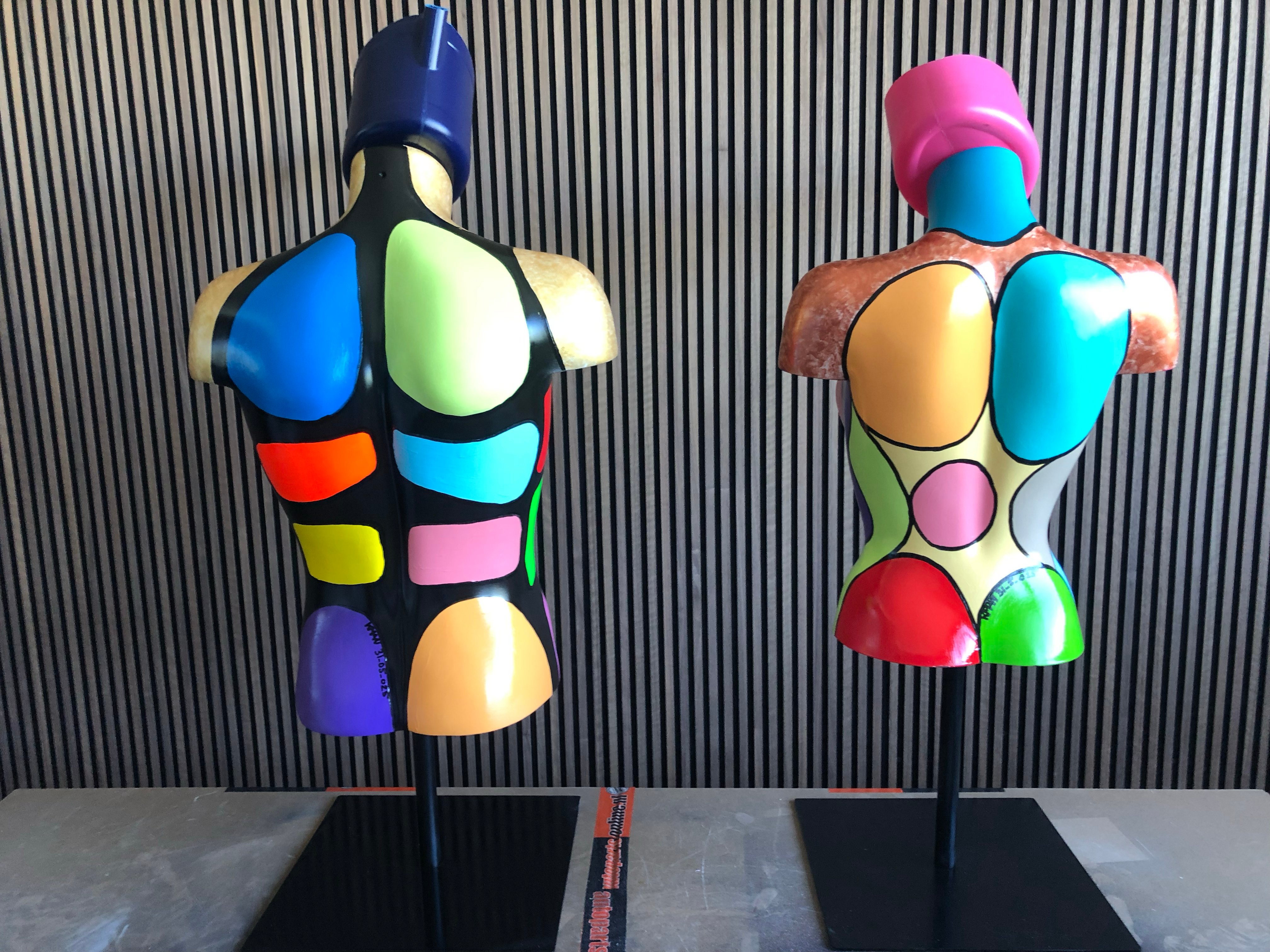 De combinatie van kleuren is de creatieve geest van de kunstenaar en maakt elk K-Man Art-paspop tot een visueel middelpunt.